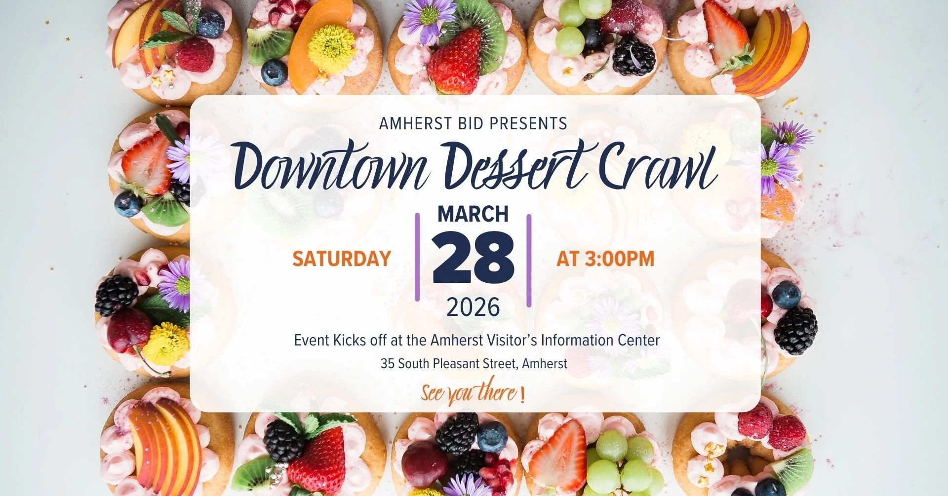 Stroll from stop to stop, discover new places, and enjoy a variety of sweet bites from Amherst’s beloved businesses. Bring friends, family, or make it a fun afternoon out!